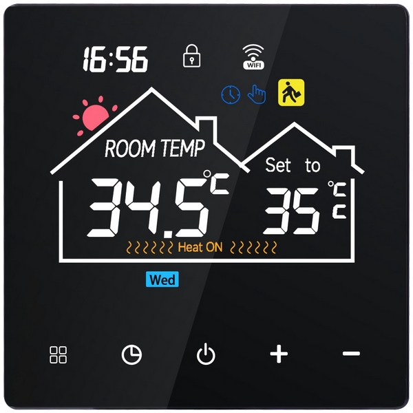 產品介紹:GSW6-WITF2系列是一款集智能控制與人性化設計于一體的WiFi地暖溫控器。該產品支持觸摸操作與手機遠程控制,配備LCD彩屏,可實時顯示室內溫度、濕度及天氣信息,適用于多種供暖系統(tǒng)的溫度管理。